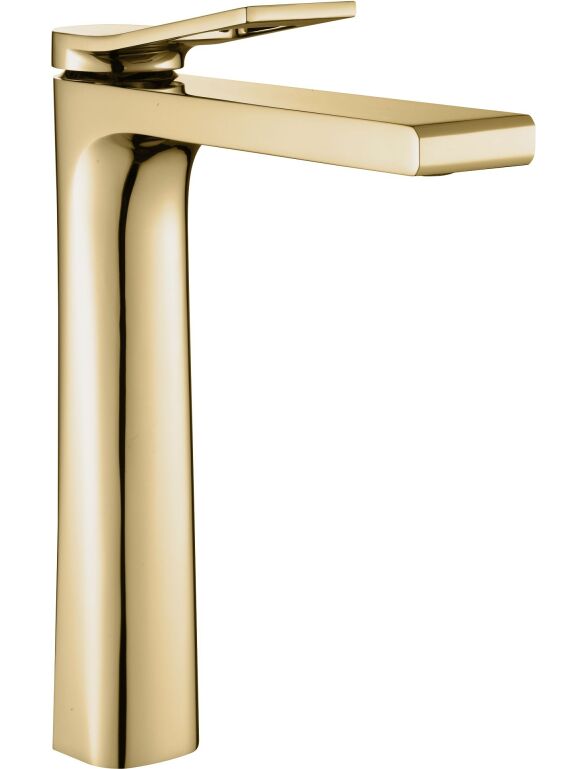Wysoka bateria umywalkowa Rea Soul to model, który został wykonany z wysokiej jakości mosiądzu w wykończeniu złoty połysk.
