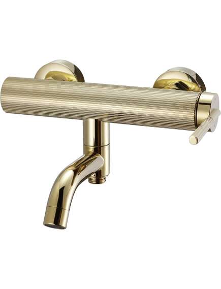 | Prezentujemy Państwu piękną, niezwykle funkcjonalną i nowoczesną baterię wannową z ruchomą, składaną wylewką. Oryginalny, ryflowany korpus, nadaje jej nowoczesny, a zarazem elegancki wygląd. Bateria jest przystosowana do montażu ściennego. Została wykonana z mosiądzu pokrytego potrójną złotą matową warstwą. Dzięki specjalnej fazie produkcji jest trwała i łatwa w utrzymaniu czystości.
