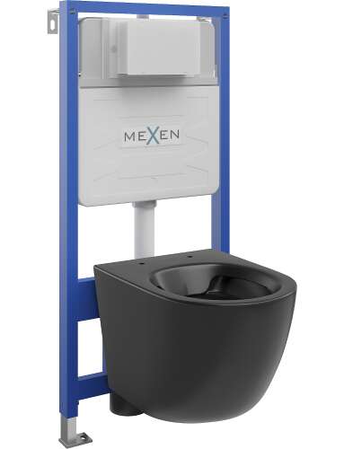 Dane techniczne : Wysokość stelaża: 111,2 cm Szerokość stelaża: 50 cm Grubość stelaża: 9,5 cm Do montażu w ścianie pełnej lub ścianie z płyty gipsowej Do miski wiszącej o rozstawie otworów 18 cm lub 23 cm Do montażu na podłożu o grubości warstw podłogi 0 - 22 cm Nogi ocynkowane, regulowane w zakresie 0-22 cm Wsporniki ocynkowane, regulowane w zakresie 135-190 mm Zbiornik z izolacją przeciwroszeniową Możliwość ustawiania ilości spłukiwanej wody: 6/4 L, 4,5/3 L Materiał miski: Ceramika sanitarna Rozmiar: 48x36x35,5 cm Kolor: Czarny mat Montaż: Wisząca System spłukiwania: Rimless (bezrantowy) W komplecie mata wygłuszająca |