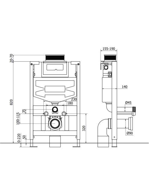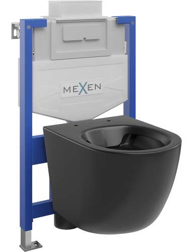 Dane techniczne : Wysokość stelaża: 82 cm Szerokość stelaża: 50 cm Grubość stelaża: 14 cm Nogi ocynkowane, regulowane w zakresie 0-22 cm Wsporniki ocynkowane, regulowane w zakresie 140-190 mm Zbiornik z izolacją przeciwroszeniową Możliwość ustawiania ilości spłukiwanej wody: 6/4 L, 4,5/3 L Do kompletowania z przyciskami Mexen z serii Fenix XS Materiał miski: Ceramika sanitarna Rozmiar: 48x36x35,5 cm Kolor: Czarny mat Montaż: Wisząca System spłukiwania: Rimless (bezrantowy) W komplecie mata wygłuszająca |