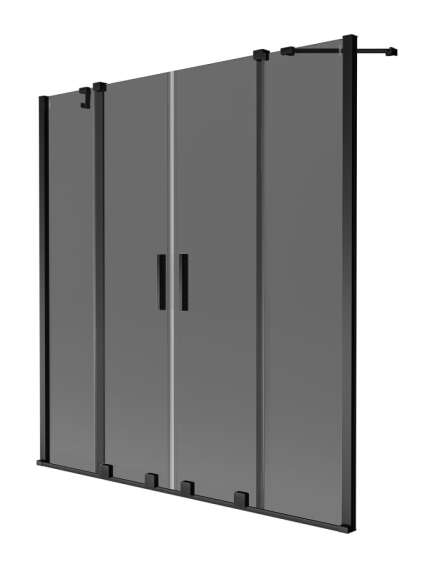 Dane techniczne: Szerokość: 140 cm Wysokość: 150 cm Rodzaj 2-skrzydłowy Montaż: Uniwersalny Typ: Ruchomy/Rozsuwany Rodzaj szkła: Hartowane Kolor szkła: Grafit Grubość szkła: 8 mm Wykończenie: Czarny Powłoka ułatwiająca czyszczenie Niwelacja nierówności ściany Komplet uszczelek odprowadzających wodę |