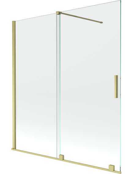 Шторка для ванны Mexen Velar, 2-створчатая раздвижная, 150 x 150 см, прозрачная, матовое золото - 896-150-000-01-55
