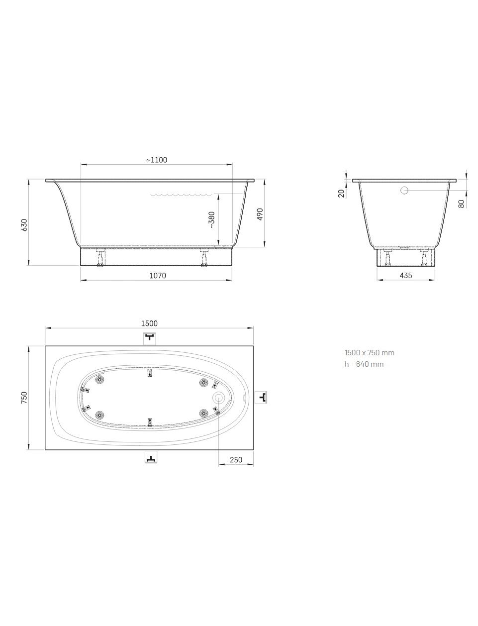 PAA Классическая, прямостоящая ванна из каменной массы PAA Uno 1500x 750