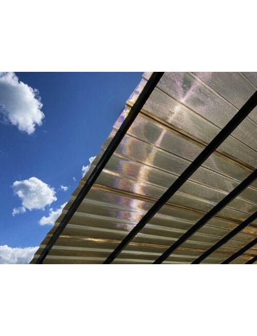 Технические характеристики: Толщина: 28 мм Ширина: 954 мм полезная 900 мм Коэффициент теплопередачи: 557 Вт/м2К УФзащита: двусторонняя