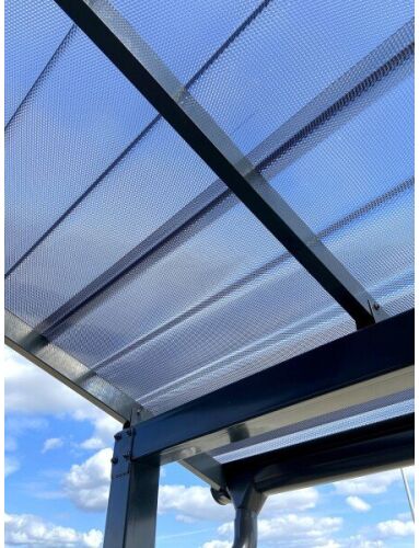 Преимущества: Поверхность с уникальной алмазной структурой Горизонтальная установка по всей конструкции крыши Покрытие большой площади Отличный дренаж Высокая светопроницаемость Защита от УФлучей Покрывной материал перерабатывается Долгоиграющий Строгий Гибкий Легкие листы Устойчив к перепадам температуры