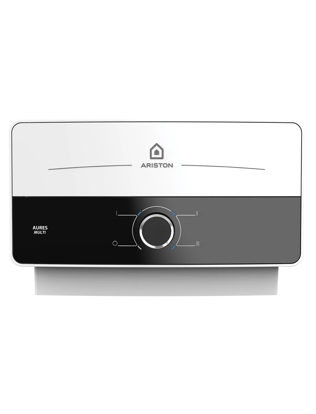 Elektriskais caurplūdes ūdens sildītājs Ariston Aures M5 Elektriskais ūdens sildītājs Sildīšanas veids: caurplūdes Montāža - virs izlietnes Jauda - 5000 W Darba spiediens - 8 bar Spriegums - 230V / 50Hz Izmērs - 304 x 180 x 110 mm Svars - 2,45 kg Krāsa - balta Ražotājs - Ariston (Itālija) Ariston AURES M – kompakts un elegants ūdens sildītājs. | ||||||||||||