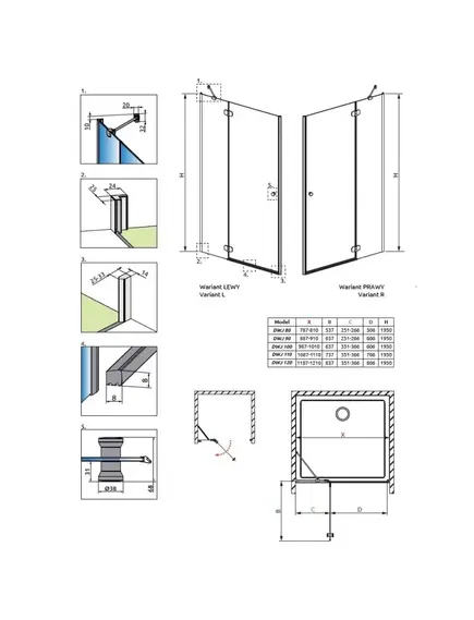 Dušas durvis Radaway Torrenta DWJ 110 L/R