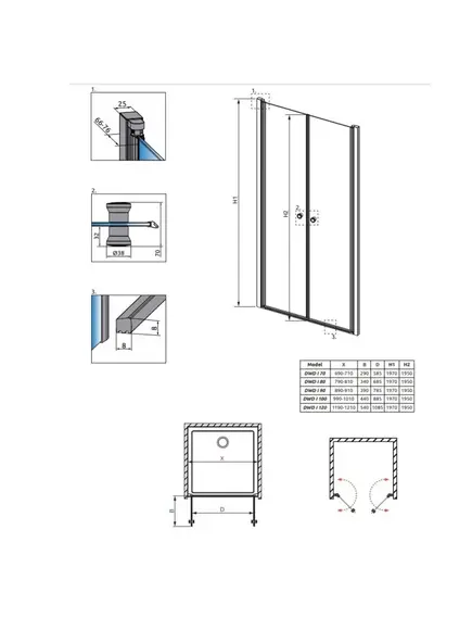 Dušas durvis veramās Radawy Eos DWD I 100 cm