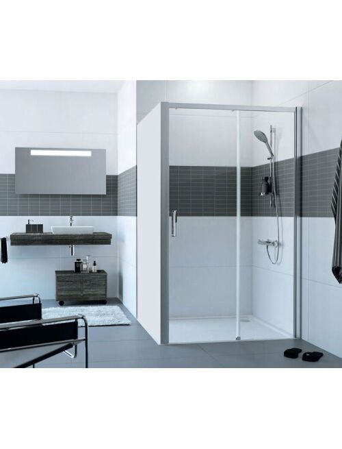 2-jų dalių dušo durys, kurias sudaro vienas slankiojamas elementas ir viena stabili sienelė (reguliuojamas sienelės plotis: 55,7-58,2 cm). Įėjimo plotis: 47,8 cm