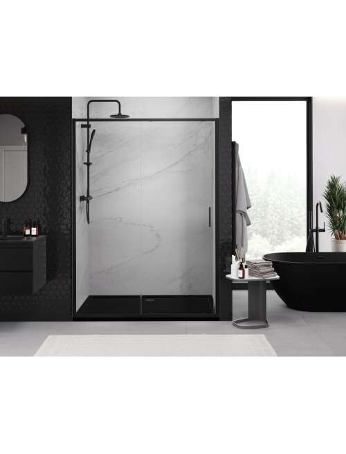 Specyfikacja produktu:Rozmiar: 145x200 cm Montaż: Uniwersalny Wejście: Rozsuwane Kolor szkła: Transparentny Rodzaj szkła: Hartowane Grubość szkła: 6 mm Profil: Aluminiowy Wykończenie: Czarny Powłoka ułatwiająca czyszczenie Niwelacja nierówności ściany Regulacja szerokości Możliwość montażu na brodziku lub płytkach Metalowy uchwyt Komplet uszczelek odprowadzających wodę Aluminiowy próg uszczelniający drzwi |
