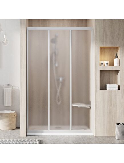 RAVAK Dušas durvis Supernova ASDP3-120 198 white + plastic Pearl, Krāsa: Balts, Platums: 120, Stikla tips: Pearl (Matēta plastmasa)