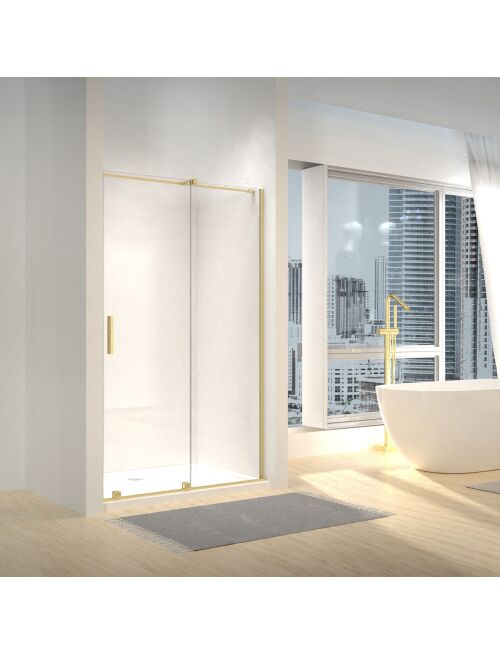 Drzwi prysznicowe Montana ze złotym szczotkowanym wykończeniem to elegancki i nowoczesny dodatek do każdej łazienki. Wykonane z wysokiej jakości szkła oraz ozdobione subtelnymi złotymi akcentami, wnoszą luksusowy wygląd i wyrafinowanie. Połączenie przezroczystego szkła i subtelnych złotych akcentów dodaje luksusu i wyrafinowania. Funkcjonalność połączona z estetyką czyni je doskonałym wyborem do nowoczesnych wnętrz. Produkt ten posiada powłokę Easy Clean która ułatwia jej czyszczenie.