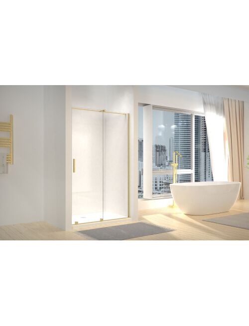 Drzwi prysznicowe Montana ze złotym szczotkowanym wykończeniem to elegancki i nowoczesny dodatek do każdej łazienki. Wykonane z wysokiej jakości szkła oraz ozdobione subtelnymi złotymi akcentami, wnoszą luksusowy wygląd i wyrafinowanie. Połączenie przezroczystego szkła i subtelnych złotych akcentów dodaje luksusu i wyrafinowania. Funkcjonalność połączona z estetyką czyni je doskonałym wyborem do nowoczesnych wnętrz. Produkt ten posiada powłokę Easy Clean która ułatwia jej czyszczenie.