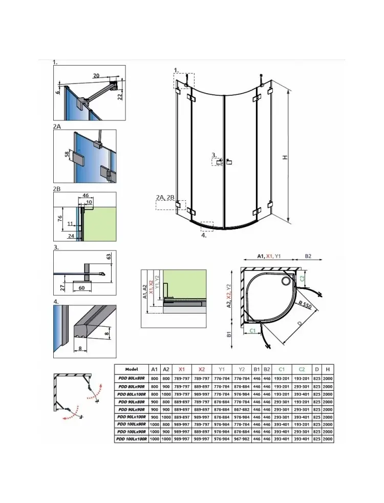 Dušas stūris pusapaļš Radaway Essenza Pro White PDD 80x80 cm