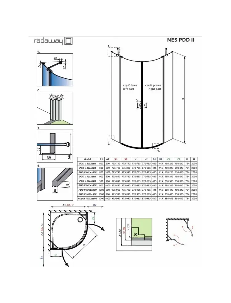 Dušas stūris pusapaļš Radaway NES PDD II 80x80cm
