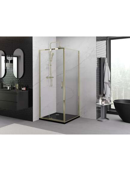 Mexen Exo kabina prysznicowa uchylna 100 x 100 cm, transparent, złota - 819-100-100-50-00