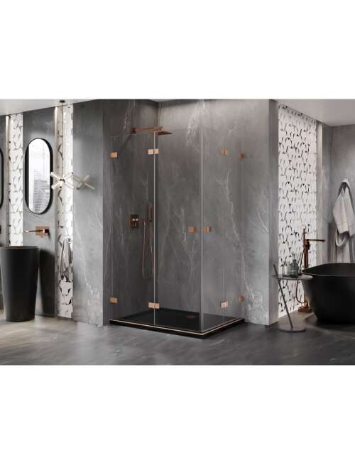 Specyfikacja produktu:Rozmiar: 95x85 cm Wysokość: 200 cm Strona montażu: Uniwersalna Wejście: Drzwi składane Kolor szkła: Transparentne Wykończenie: Miedź szczotkowana Profil: Aluminiowy Rodzaj szkła: Hartowane Grubość szkła: 6 mm Powłoka ułatwiająca czyszczenie Możliwa regulacja szerokości Dwa systemy mocowania: - Z profilem, który umożliwia niwelacje nierówności ściany - Bez profilu w przypadku idealnie prostych ścian Możliwość montażu na brodziku lub płytkach Mosiężne klamry i zawiasy zlicowane z taflą szkła Listwa magnetyczna oraz uszczelki elastomerowe odprowadzające wodę Aluminiowy próg uszczelniający drzwi |