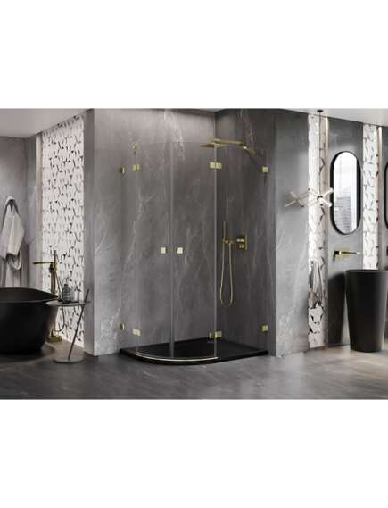 Mexen Lunar kabina prysznicowa półokrągła uchylna prawa 100 x 70 cm, transparent, złota - 833-100P-070L-50-00