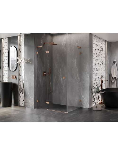 Specyfikacja produktu:Rozmiar: 100x90 cm (drzwi lewe 100 cm, ścianka 90 cm) Wysokość: 200 cm Strona montażu: Lewa Wejście: Drzwi uchylne Kolor szkła: Transparentne Wykończenie: Miedź szczotkowana Profil: Aluminiowy Stabilizator kątowy L: Stal nierdzewna Rodzaj szkła: Hartowane Grubość szkła: 8 mm Powłoka ułatwiająca czyszczenie Możliwa regulacja szerokości Dwa systemy mocowania: - Z profilem, który umożliwia niwelacje nierówności ściany - Bez profilu w przypadku idealnie prostych ścian Możliwość montażu na brodziku lub płytkach Mechanizm unoszenia i opuszczania drzwi Mosiężne klamry i zawiasy zlicowane z taflą szkła Listwa magnetyczna oraz uszczelki elastomerowe odprowadzające wodę Aluminiowy próg uszczelniający drzwi |