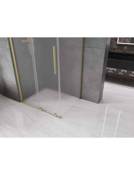 Specyfikacja produktu:Rozmiar: 90x100 cm (drzwi 90 cm, ścianka 100 cm) Wysokość: 200 cm Montaż: Uniwersalny Wejście: Drzwi rozsuwane Kolor szkła: Szron Wykończenie: Złoty szczotkowany Rodzaj szkła: Hartowane Grubość szkła: 8 mm Profil: Aluminiowy Powłoka ułatwiająca czyszczenie Niwelacja nierówności ściany Regulacja szerokości Możliwość montażu na brodziku lub płytkach Najwyższa jakość pojedynczych rolek Uchwyt ze stali nierdzewnej Komplet uszczelek odprowadzających wodę Aluminiowy próg uszczelniający drzwi |