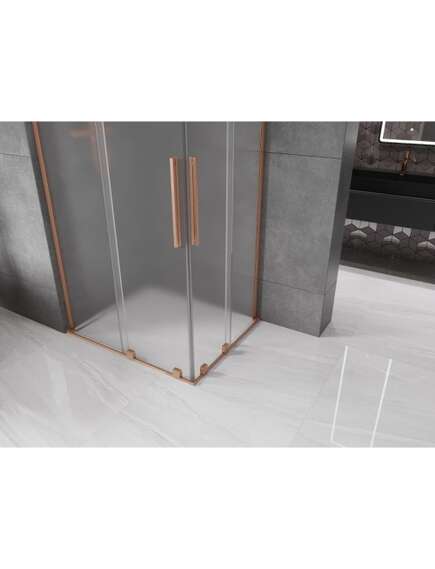Specyfikacja produktu:Rozmiar: 100x90 cm Wysokość: 200 cm Montaż: Uniwersalny Wejście: Drzwi rozsuwane Kolor szkła: Szron Wykończenie: Miedź szczotkowana Rodzaj szkła: Hartowane Grubość szkła: 8 mm Profil: Aluminiowy Stabilizator kątowy L: Stal nierdzewna Powłoka ułatwiająca czyszczenie Niwelacja nierówności ściany Regulacja szerokości Możliwość montażu na brodziku lub płytkach Najwyższa jakość pojedynczych rolek Uchwyt ze stali nierdzewnej Komplet uszczelek odprowadzających wodę Aluminiowy próg uszczelniający drzwi |