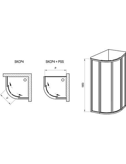 Izstrādājums sastāv no divām taisnām nekustīgām daļām un divām izliektām daļām, kas veido bīdāmas durvis. Izstrādājums uzstādāms vannas istabā ar flīzēm apdarinātā stūrī uz paliktņiem RAVAK RONDA, ELIPSO, ELIPSO PRO, ELIPSO PRO FLAT, ELIPSO PRO CHROME vai tieši uz grīdas ar iebūvētu dušas kanālu vai trapu. Speciāli dziļajam paliktnim Sabina tiek izgatavots ar augstumu 1770 mm. Var izgatavot nestandarta dušas stūri.