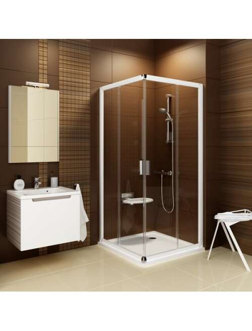 RAVAK dušas durvis stūrim BLRV2K-120, 120 cm pulēts alumīnijs/caursp.stikls