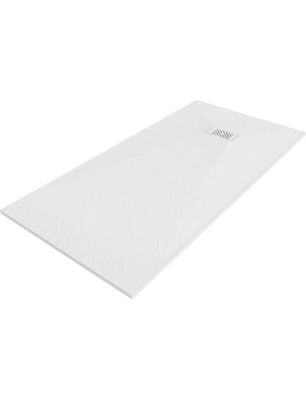 Dane techniczne: Rozmiar: 170x90x2,6 cm Kolor: Biały Typ: Prostokątny, Ultrapłaski Montaż: W posadzce lub na posadzce Materiał: SMC - tworzywo sztuczne Struktura kamienia Możliwość przycięcia brodzika Trwały produkt, który nie ulegnie deformacji Maksymalna stabilność dzięki dobrej odporności na uderzenia W komplecie syfon czyszczony od góry Średnica odpływu: 90 mm Wykończenie maskownicy: Białe |