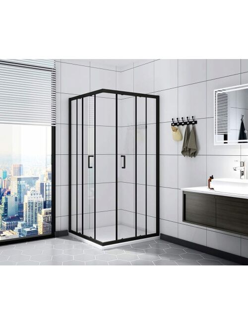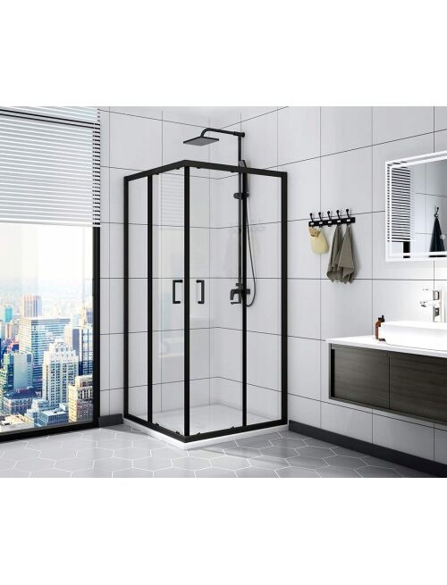 Nowoczesna i funkcjonalna kabina prysznicowa, z czarnym wykończeniem profili i czarna kratą na szybach drzwiowych. Kolor jest nanoszony w procesie produkcji, gwarantuje to jakość i trwałość na lata. Hartowane szkło kabiny jest pokryte powłoką Easy Clean, pozwalającej na utrzymanie czystości i pięknego wyglądu.