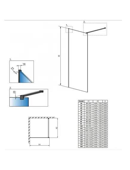 Dušas siena Radaway MODO New Black Frame II 1300x2000mm
