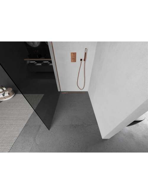 Specyfikacja produktu:Szerokość: 100 cm Wysokość: 200 cm Montaż: Uniwersalny, prawa lub lewa Kolor szkła: Grafit Wykończenie: Różowe złoto Rodzaj szkła: Hartowane Grubość szkła: 8 mm Profil: Aluminiowy Wspornik: Stal nierdzewna Długość max. wspornika: 150 cm Możliwość przycięcia wspornika Powłoka ułatwiająca czyszczenie Niwelacja nierówności ściany Możliwość montażu na brodziku lub płytkach |