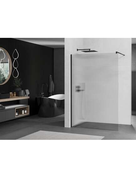 Dane techniczne: Szerokość: 140 cm Wysokość: 200 cm Montaż: Uniwersalny, prawa lub lewa Kolor szkła: Prążki Wykończenie: Czarny Rodzaj szkła: Hartowane Grubość szkła: 8 mm Profil: Aluminiowy Wspornik: Stal nierdzewna Długość max. wspornika: 150 cm Możliwość przycięcia wspornika Powłoka ułatwiająca czyszczenie Niwelacja nierówności ściany Możliwość montażu na brodziku lub płytkach |