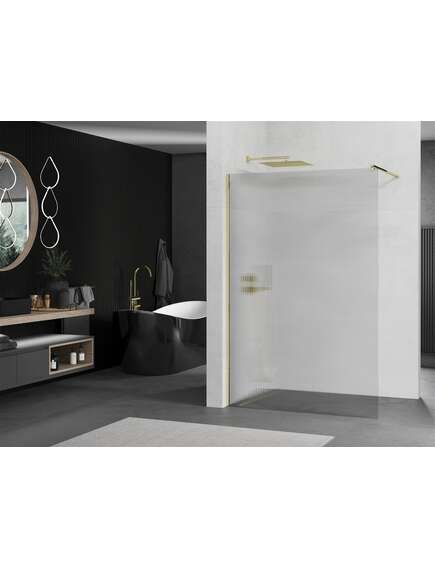 Dane techniczne: Szerokość: 70 cm Wysokość: 200 cm Montaż: Uniwersalny, prawa lub lewa Kolor szkła: Prążki Wykończenie: Złoty Rodzaj szkła: Hartowane Grubość szkła: 8 mm Profil: Aluminiowy Wspornik: Stal nierdzewna Długość max. wspornika: 150 cm Możliwość przycięcia wspornika Powłoka ułatwiająca czyszczenie Niwelacja nierówności ściany Możliwość montażu na brodziku lub płytkach |