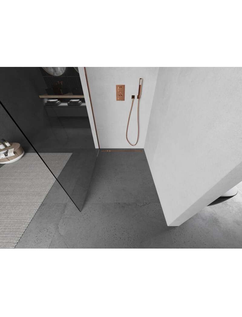 Specyfikacja produktu:Szerokość: 70 cm Wysokość: 200 cm Montaż: Uniwersalny, prawa lub lewa Kolor szkła: Transparentne - Przeźroczyste Wykończenie: Różowe złoto Rodzaj szkła: Hartowane Grubość szkła: 8 mm Profil: Aluminiowy Wspornik: Stal nierdzewna Długość max. wspornika: 150 cm Możliwość przycięcia wspornika Powłoka ułatwiająca czyszczenie Niwelacja nierówności ściany Możliwość montażu na brodziku lub płytkach |