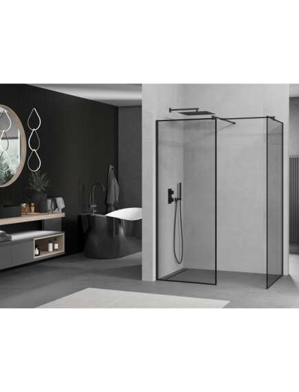 Specyfikacja produktu:Szerokość: 110x80 cm (ścianka X - 110 cm, ścianka Y - 80 cm) Wysokość: 200 cm Montaż: Uniwersalny Kolor szkła: Czarny wzór Wykończenie: Czarny Rodzaj szkła: Hartowane Grubość szkła: 8 mm Profil: Aluminiowy Wspornik: Stal nierdzewna Długość max. wspornika: 150 cm Możliwość przycięcia wspornika Powłoka ułatwiająca czyszczenie Niwelacja nierówności ściany Możliwość montażu na brodziku lub płytkach |