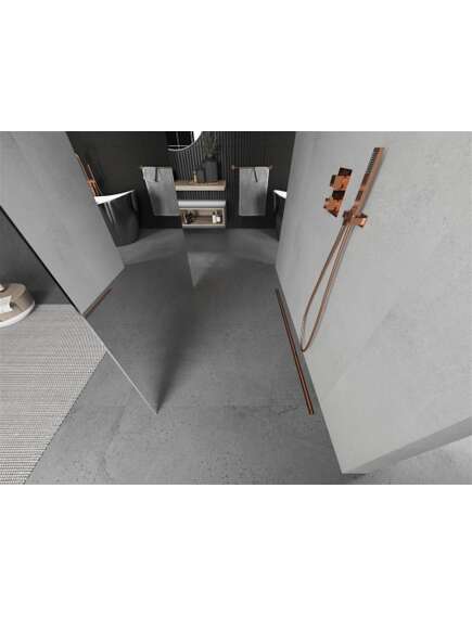 Specyfikacja produktu:Szerokość: 100 cm Wysokość: 200 cm Montaż: Uniwersalny, prawa lub lewa Kolor szkła: Lustro Wykończenie: Różowe złoto Rodzaj szkła: Hartowane Grubość szkła: 8 mm Profil: Aluminiowy Wspornik: Stal nierdzewna Długość max. wspornika: 150 cm Możliwość przycięcia wspornika Powłoka ułatwiająca czyszczenie Niwelacja nierówności ściany Możliwość montażu na brodziku lub płytkach |