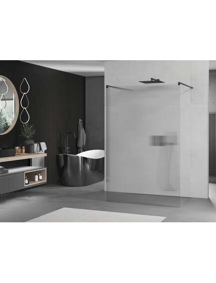 Dane techniczne: Szerokość: 100 cm Wysokość: 200 cm Montaż: Uniwersalny, prawa lub lewa Kolor szkła: Prążki Wykończenie: Czarny Rodzaj szkła: Hartowane Grubość szkła: 8 mm Profil: Aluminiowy Wspornik: Stal nierdzewna Długość max. wspornika: 150 cm Możliwość przycięcia wspornika Powłoka ułatwiająca czyszczenie Niwelacja nierówności ściany Możliwość montażu na brodziku lub płytkach |