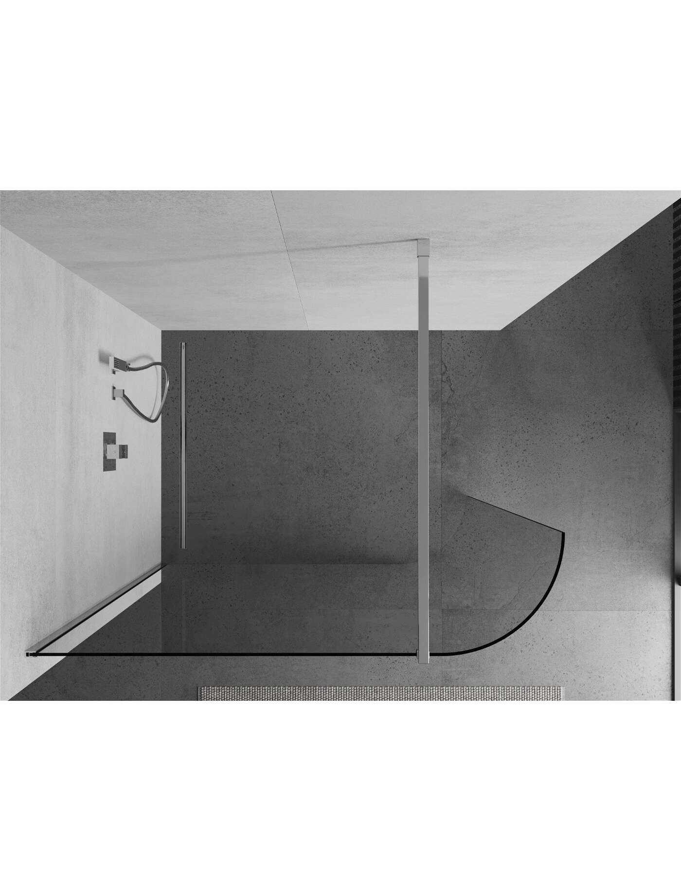 Dane techniczne: Szerokość: 150 cm Wysokość: 200 cm Montaż: Uniwersalny, prawa lub lewa Kolor szkła: Transparentne - Przeźroczyste Wykończenie: Chrom Rodzaj szkła: Hartowane Grubość szkła: 8 mm Profil: Aluminiowy Wspornik: Stal nierdzewna Długość max. wspornika: 150 cm Możliwość przycięcia wspornika Powłoka ułatwiająca czyszczenie Niwelacja nierówności ściany Możliwość montażu na brodziku lub płytkach |
