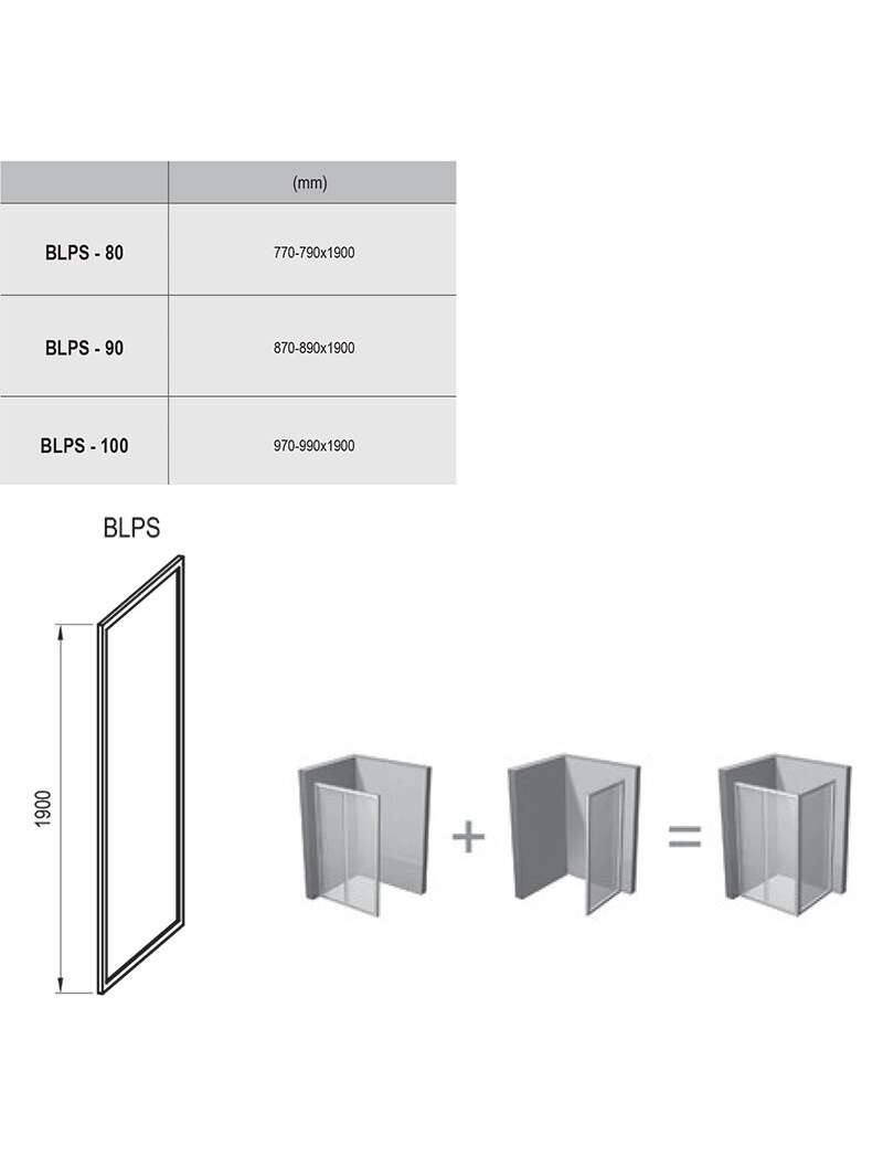 Izstrādājums sastāv no vienas nekustīgas daļas. Izstrādājums uzstādāms vannas istabā ar flīzēm apdarinātā stūrī (apvienojumā ar dušas durvīm BLDP2) uz paliktņiem RAVAK PERSEUS, PERSEUS PRO, PERSEUS PRO FLAT, PERSEUS PRO CHROME, GIGANT PRO, GIGANT PRO FLAT, GIGANT PRO CHROME vai tieši uz grīdas ar iebūvētu dušas kanālu vai trapu. Nekustīgā sieniņa nav paredzēta patstāvīgai izmantošanai. Dušas durvju un divu nekustīgu BLPS tipa sieniņu apvienojums ļauj izveidot "U" veida dušas stūri. Regulējošais profils BLNPS ļauj paplašināt izstrādājumu par 20 mm. Var izgatavot nestandarta dušas durvis un nekustīgu sieniņu.