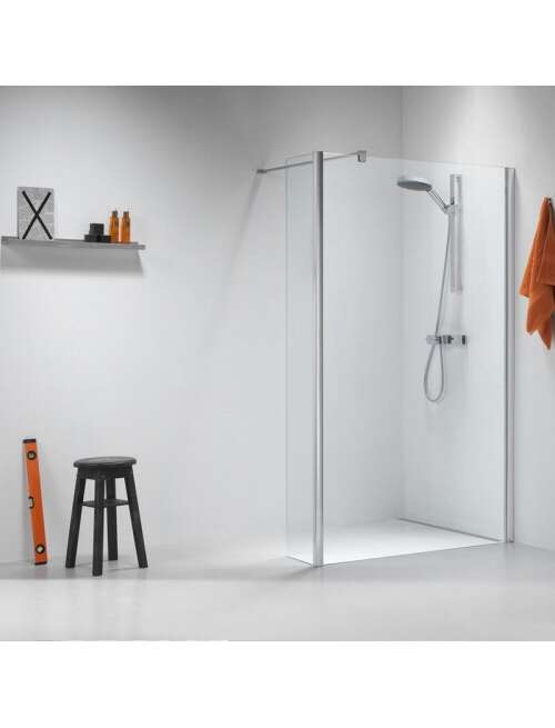 Stacionari dušo sienelė be padėklo Matmenys: 90 x 195 cm Komplekte - papildoma 30 cm pločio apsauginė sienelė nuo vandens purslų. Su atraminiu sieniniu stabilizavimo laikikliu (pagal poreikį gali būti trumpinamas). Chromo spalvos aliuminio profilis. Sienelės pločio reguliavimo diapazonas 89-91 cm 8 mm grūdintas skaidrus stiklas, padengtas antikalkine danga, apsaugančia nuo kalkių nuosėdų ir užtikrina ilgalaikį skaidrumą. Universalus montavimas: kairinis/ dešininis. Gamintojas: SEALSKIN, Nyderlandai |