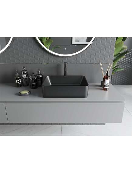 Izmērs: 48x37x13 cm Tips: Galda virsma < p> Krāsa: Matēta melnaPārplūdes atvere: Nē Jaucējkrāna atvere: Nē Materiāls: Sanitārā keramika |