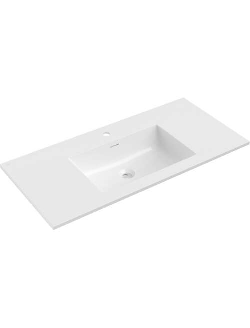 Specyfikacja produktu:Rozmiar: 101x46,5x16,5 cm Głębokość: 11,9 cm Typ: Wpuszczana w blat Kolor: Biały połysk Materiał: Konglomerat Otwór przelewowy: Tak Otwór na baterie: Tak |