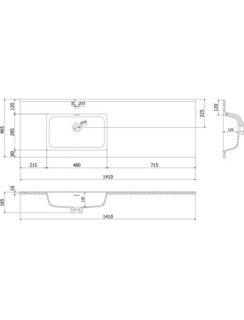 Mexen Otis umywalka wpuszczana w blat lewa 141 x 46,5 cm, czarna mat - 25181471L
