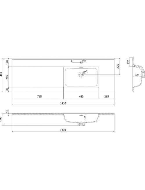 Mexen Otis umywalka wpuszczana w blat prawa 141 x 46,5 cm, biała mat - 25181401P