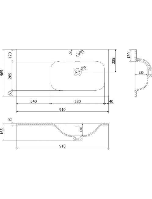 Mexen Vela umywalka wpuszczana w blat prawa 91 x 46,5 cm, czarny mat - 25239071P