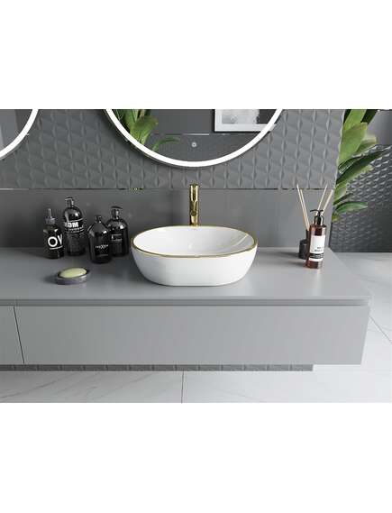 Mexen Viki umywalka nablatowa 48 x 35 cm, biała/złota rant - 21054805