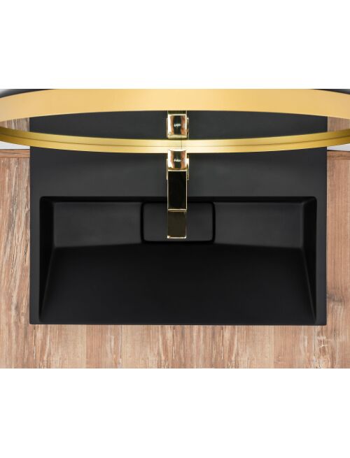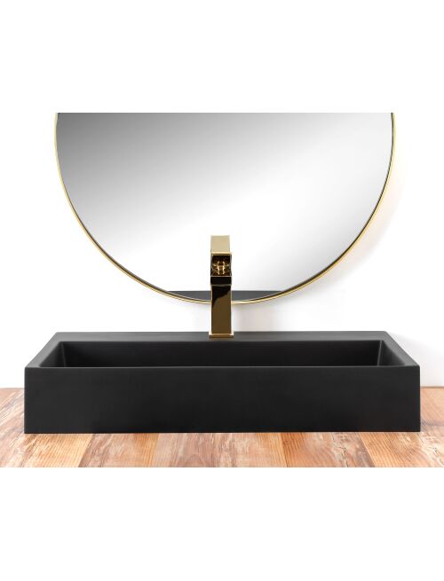 | Prezentujemy Państwu piękną, niezwykle funkcjonalną i nowoczesną umywalkę. Jest to produkt, który w doskonały sposób wypełni Państwa przestrzeń łazienkową zachowując nienaganny wygląd i estetykę wnętrza. Umywalka wykonana jest z wysokiej jakości konglomeratu w kolorze czarny mat. Umywalkę można podwiesić bądź zamontować bezpośrednio na blacie.