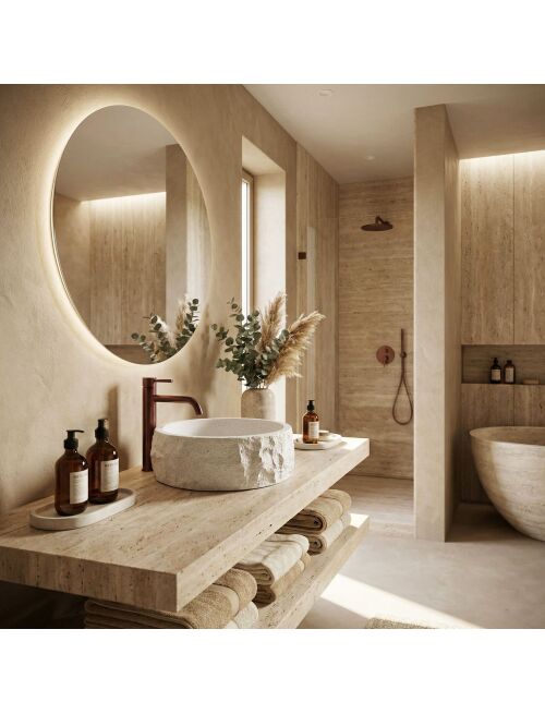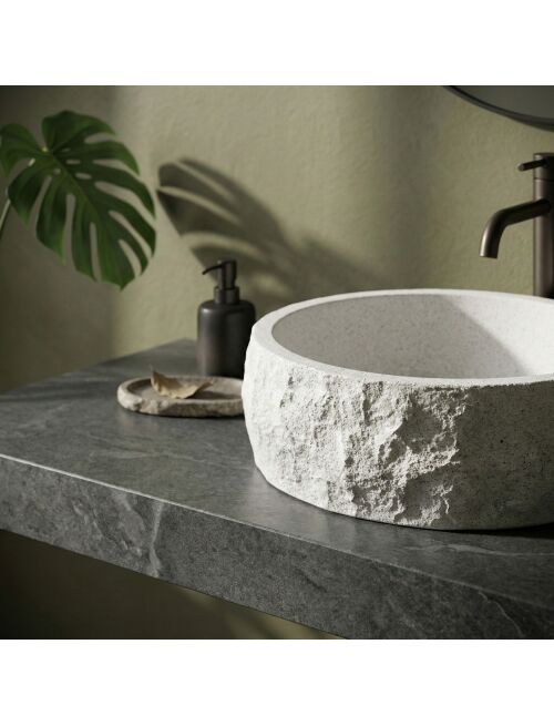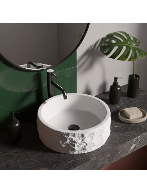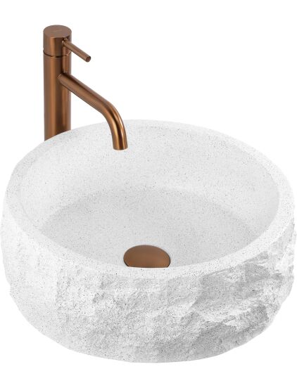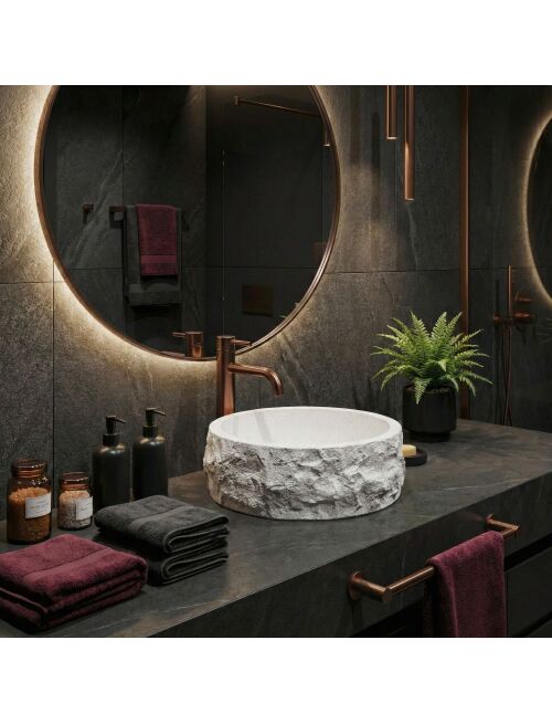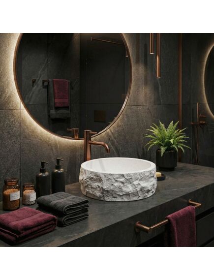 | Wybierz umywalkę nablatową Rea Alice, jeśli szukasz wyrazistego, naturalnego akcentu do swojej łazienki. Ten okrągły model świetnie łączy w sobie surowy wygląd kamienia z nowoczesną funkcjonalnością i wygodą użytkowania.Materiał Artificial Stone – umywalka jest wykonana z solidnego, sztucznego kamienia kompozytowego. To materiał bardzo trwały, odporny na uszkodzenia i odpryski, a przy tym cieplejszy i przyjemniejszy w dotyku niż zwykła ceramika.Faktura kamienia – zewnętrzna powierzchnia misy przypomina surową, nieobrobioną skałę. Jasna powierzchnia z delikatnym nakrapianiem i nieregularna, chropowata struktura nadają bryle wyjątkowego, rzemieślniczego charakteru.Gładkie wnętrze – w mocnym kontraście do strukturalnej obudowy, środek umywalki jest idealnie gładki. Dzięki temu woda swobodnie spływa do odpływu, a codzienne utrzymanie misy w czystości jest szybkie i bezproblemowe.Okrągła forma i montaż nablatowy – klasyczny, okrągły kształt jest bardzo praktyczny na co dzień. Montaż bezpośrednio na blacie lub szafce pozwala w pełni wyeksponować ozdobną, kamienną fakturę z każdej strony.Umywalka Rea Alice to doskonały wybór dla osób ceniących wzornictwo inspirowane naturą. Jej surowy design będzie świetnie wyglądał we wnętrzach nowoczesnych, minimalistycznych oraz tych w stylu wabi-sabi, wprowadzając do łazienki mocny, organiczny akcent. |