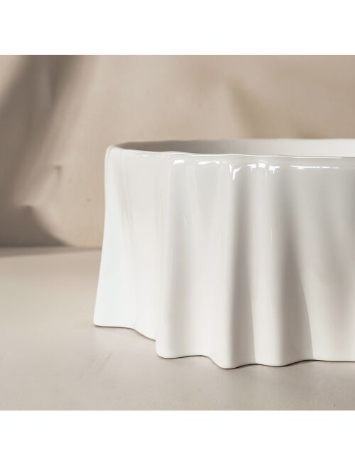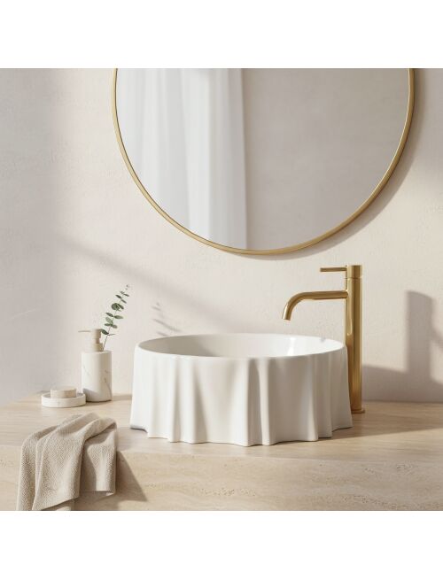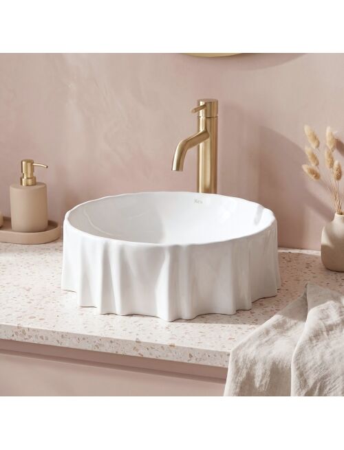 | Nadaj swojej łazience wyjątkowego charakteru dzięki umywalce nablatowej Rea Anastazja. Ten model zrywa z minimalizmem gładkich brył, oferując unikalną, dekoracyjną formę. Wykonana z wysokiej jakości ceramiki sanitarnej w kolorze śnieżnej bieli, umywalka wyróżnia się strukturą imitującą tkaninę.Efekt drapowania – zewnętrzne ścianki misy posiadają nieregularne, faliste żłobienia, które przypominają pofałdowany materiał, tworząc efektowną grę światła i cienia.Biały połysk – klasyczne, lśniące wykończenie podkreśla elegancję produktu i ułatwia dopasowanie go do pozostałej armatury oraz ceramiki w łazience.Gładkie wnętrze – mimo dekoracyjnej formy zewnętrznej, środek misy pozostaje idealnie gładki, co zapewnia swobodny przepływ wody i łatwość w utrzymaniu czystości.Ceramika sanitarna – trwały materiał odporny na zarysowania, odbarwienia oraz uszkodzenia, gwarantujący nienaganny wygląd przez lata.Montaż nablatowy – konstrukcja przystosowana do postawienia na blacie lub szafce pozwala w pełni wyeksponować ozdobne walory bryły.Umywalka Rea Anastazja to idealny wybór do wnętrz w stylu glamour, klasycznym oraz nowoczesnym. Jej biżuteryjny charakter sprawia, że staje się ona centralną ozdobą strefy mycia, łącząc funkcjonalność z wyrafinowanym designem. |