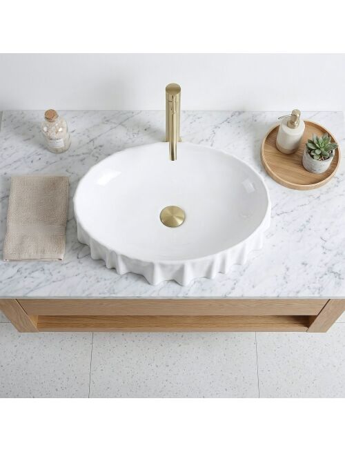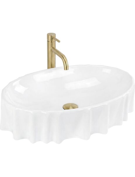 | Szukasz wyjątkowego detalu, który ożywi wnętrze Twojej łazienki? Umywalka nablatowa REA Aurelia w kolorze białym to nietuzinkowy projekt przypominający delikatnie pofalowany materiał, który przyciąga wzrok i nadaje wnętrzu lekkości. Zastosowanie najwyższej klasy ceramiki sanitarnej to gwarancja doskonałego wyglądu na lata oraz niezwykłej trwałości.